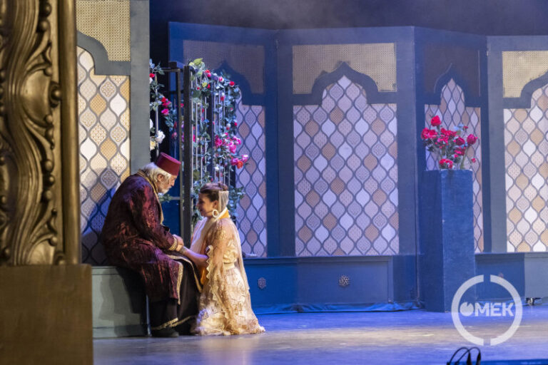 Az előadás kezdete előtt természetesen újra besötétült az üvegmozaik, majd elkezdődött a Gül baba című operett előadás, amelyet a Budapestről érkezett Sensum Arts Színház előadásában láthatott az ózdi közönség. A darab a Déryné program keretében valósult meg, ennek köszönhetően most is kedvezményes áron juthatott jegyhez a közönség.