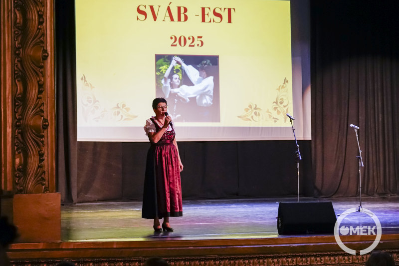 Népes számú közönség foglalt helyet az Olvasó színháztermében, ahol Göncfalvi Éva köszöntötte a vendégeket a tizedik alkalommal megszervezett Sváb-esten, majd a magyar és a német nemzetiségi himnusz dallamai csendültek fel, melyet közösen énekeltek el a jelenlévők.
