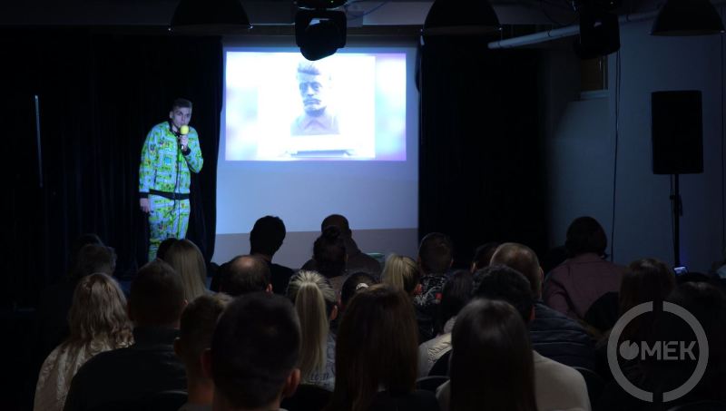 Gyülekeztek a résztvevők az ÓMÉK-Olvasó alagsorában. Baranyai Barna önálló estjére érkeztek. Az „Ország Leghülyébb Útikalauza” nevet viseli a stand up előadás, ami Magyarország legviccesebb, legbizarrabb látványosságait mutatja be többek között szobrokon, furcsa nevű kocsmákon, kisebb múzeumokon keresztül.