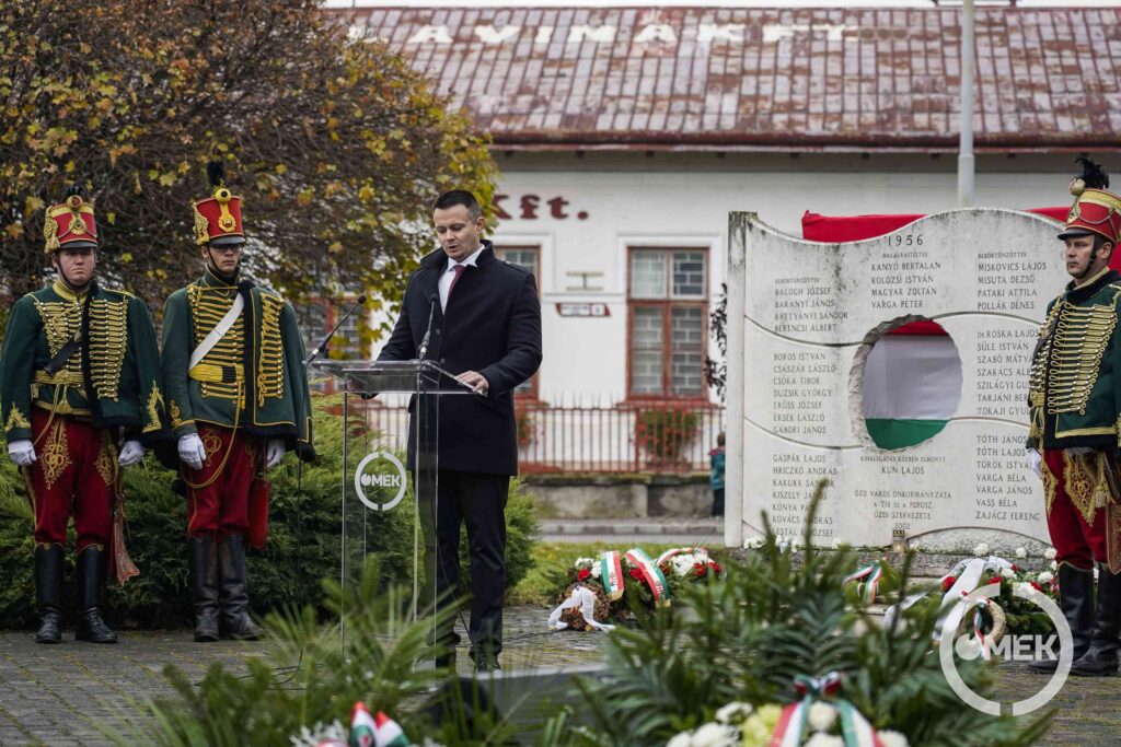 „1956 hősei úgy gondolom, hogy nem azt várják tőlünk, hogy kívülről soroljuk a forradalom eseményeit, vagy neveket mondjunk fel. Egy valamit várnak joggal, hogy legyünk hűek az általuk képviselt elvekhez és értékekhez, hogy vigyük tovább azt a hitet, amellyel az ország jövőjéért áldozták életüket. Az akkori összefogás példaértékű lehet ma is. 1956 szellemisége azt jelenti, hogy tiszteletben tartjuk a szólás szabadságát, a szabad véleménynyilvánítást, hogy tisztelettel fordulunk egymás felé. 1956 olyan maradandó értéket teremtett, amely mindig emlékeztet egy nép összetartására és arra, hogy a diktatúrának itt hosszú távon nincs esélye. Arra is emlékeztet, hogy soha nem szabad megtörni, soha nem szabad feladni” – mondta beszédében Janiczak Dávid, polgármester.