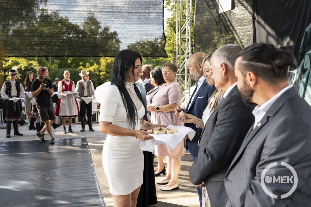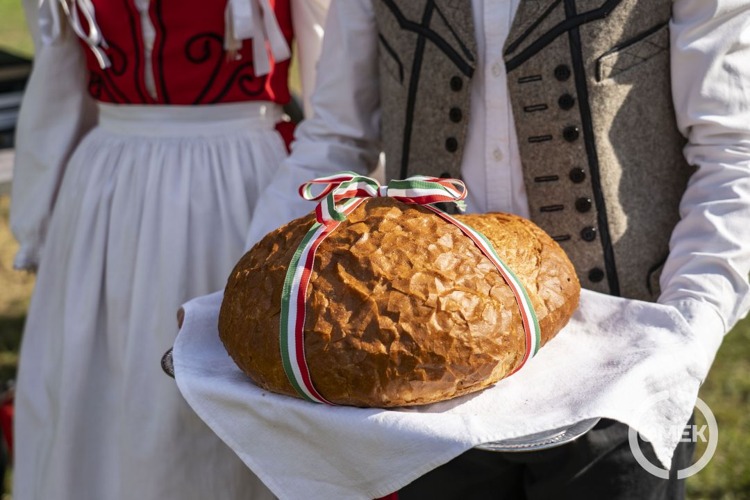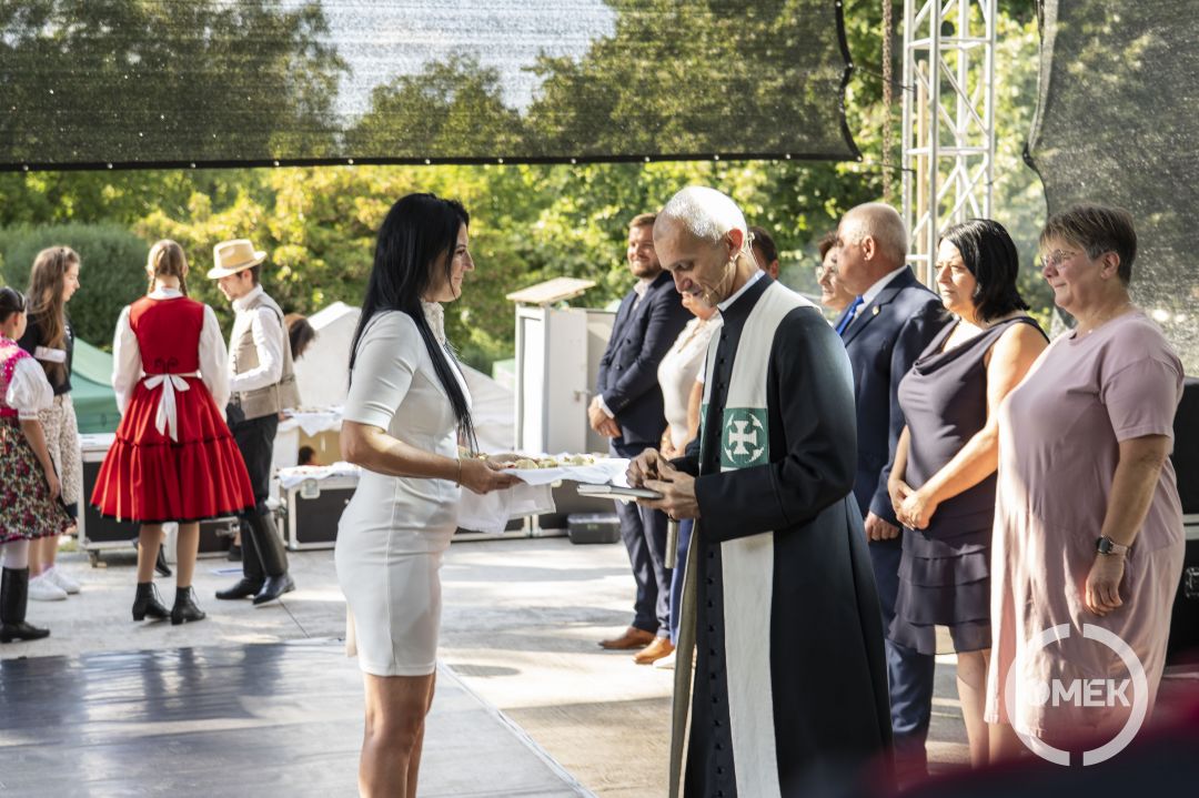 Szőke Gábor atya megáldotta az Új Kenyeret. Ezt az új búzából készült, nemzeti szalaggal átkötött „cipót” Marosréti-Zsuponyó Anett alpolgármester szegte meg. A város vezetői, a megjelent önkormányzati képviselőkkel együtt a közönséget is megkínálták az új kenyérből.