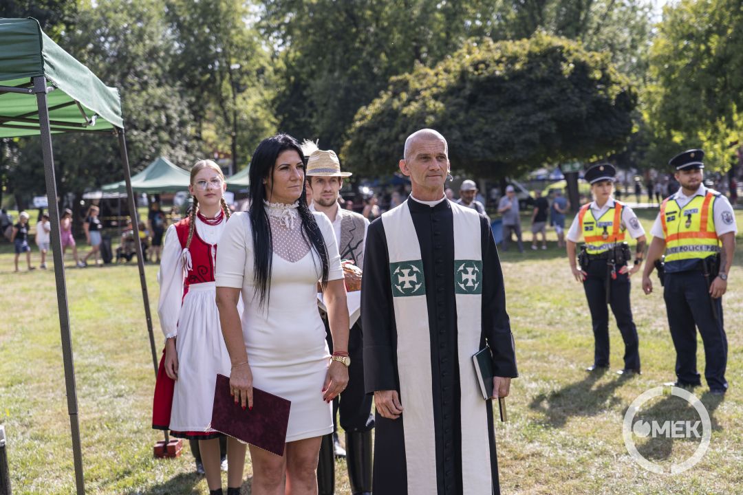 A Tábortűz Hagyományőrző Egyesület és a helyi táncegyüttesek tagjainak gyűrűjében vonult fel a színpadra Marosréti-Zsuponyó Anett alpolgármester és Szőke Gábor római katolikus plébános augusztus 20-án. A város vezetői közösen énekelték el a Himnuszt, majd Bukovinszky Zsolt köszöntötte az ünneplőket.