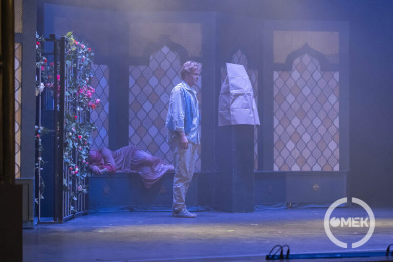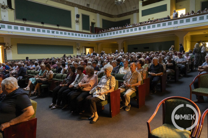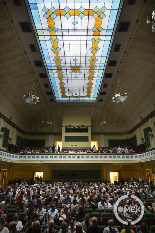 Az előadás kezdete előtt természetesen újra besötétült az üvegmozaik, majd elkezdődött a Gül baba című operett előadás, amelyet a Budapestről érkezett Sensum Arts Színház előadásában láthatott az ózdi közönség. A darab a Déryné program keretében valósult meg, ennek köszönhetően most is kedvezményes áron juthatott jegyhez a közönség.
