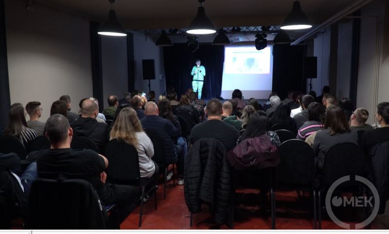 Gyülekeztek a résztvevők az ÓMÉK-Olvasó alagsorában. Baranyai Barna önálló estjére érkeztek. Az „Ország Leghülyébb Útikalauza” nevet viseli a stand up előadás, ami Magyarország legviccesebb, legbizarrabb látványosságait mutatja be többek között szobrokon, furcsa nevű kocsmákon, kisebb múzeumokon keresztül.